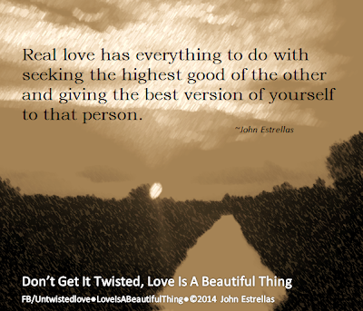Are you being self-serving in a relationship? If so, where is the love in that? Real love is far from selfishness, being egotistical and a spirit full of pride. It has everything to do with providing, giving of yourself to your significant other with their best interest at hand and for their highest good. When you desire someone, be sure you have good intentions for needing to love them simply because you love and need them in your life. Ask yourself; are your purest reasons towards your loved one nothing less than to give them the best of your love you can provide them with, without any connected ulterior motives? Love conquers all, and heals a multitude of wounds, and it doesn't cover up the surface--you can't expect it to grow if you continue to open the wounds that have yet to heal. Don't be selfish, be self-sacrificial.